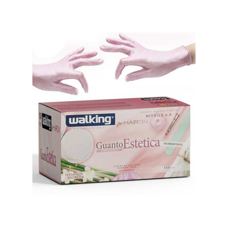 Walking Guanto Estetica Nitrile Rosa Misura Small Confezione da 100 pezzi