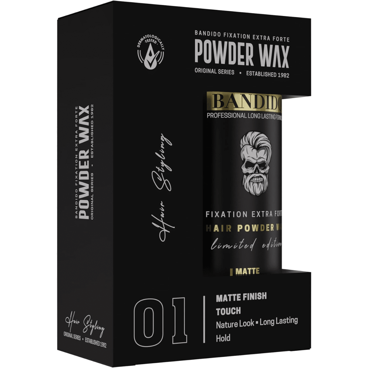 Il formato compatto da 32 g si adatta a qualsiasi borsa ed è quindi ideale per i viaggi o per rinfrescarsi rapidamente. Inoltre, il prodotto è dermatologicamente testato ed è sinonimo di qualità professionale. Prendi ora la cera Bandido Powder e dai ai tuoi capelli un look opaco perfetto con una forte tenuta, senza lucentezza, senza compromessi!