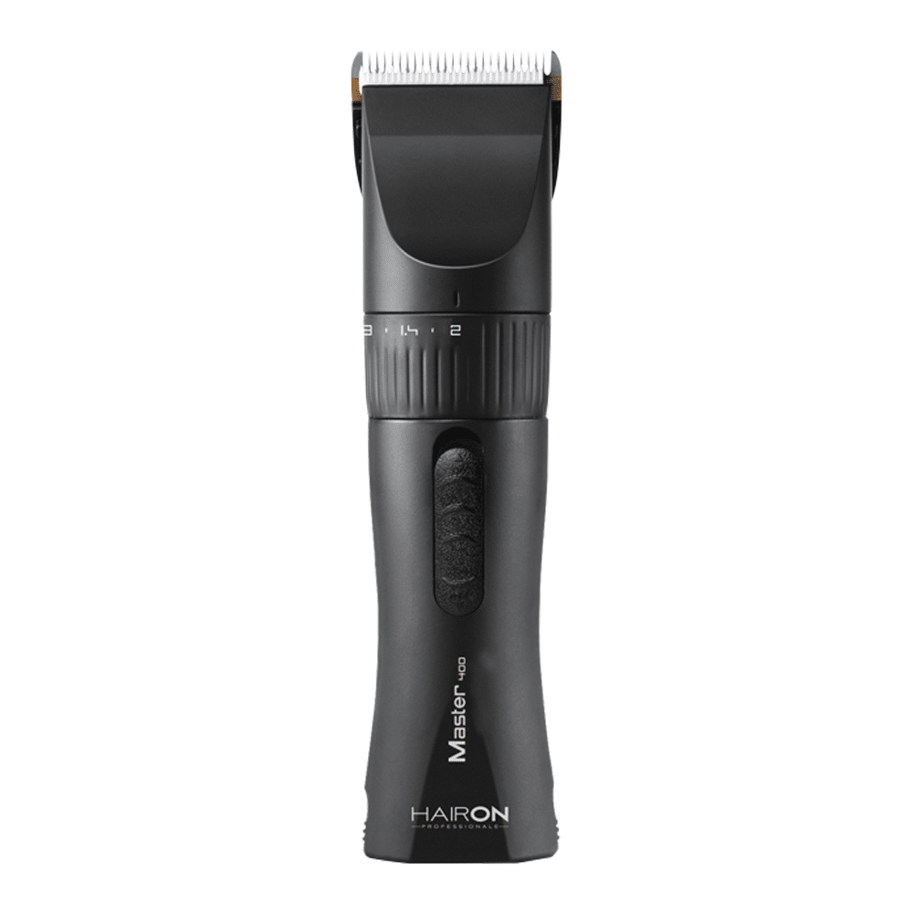La tosatrice professionale Hair On Master 400 è disponibile nella versione “All Black” ed è apprezzata per la sua versatilità e l’uso continuo garantito dalle due batterie incluse.